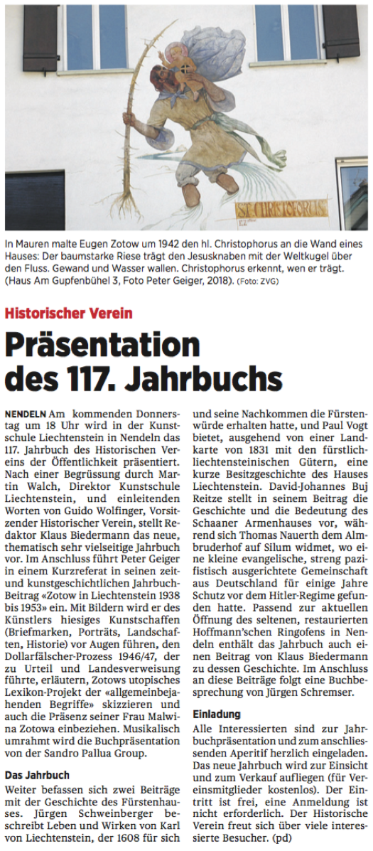 | Kurzreferat zum Künstler Eugen Zotow: | PD Dr. Peter Geiger, Historiker, Schaan |