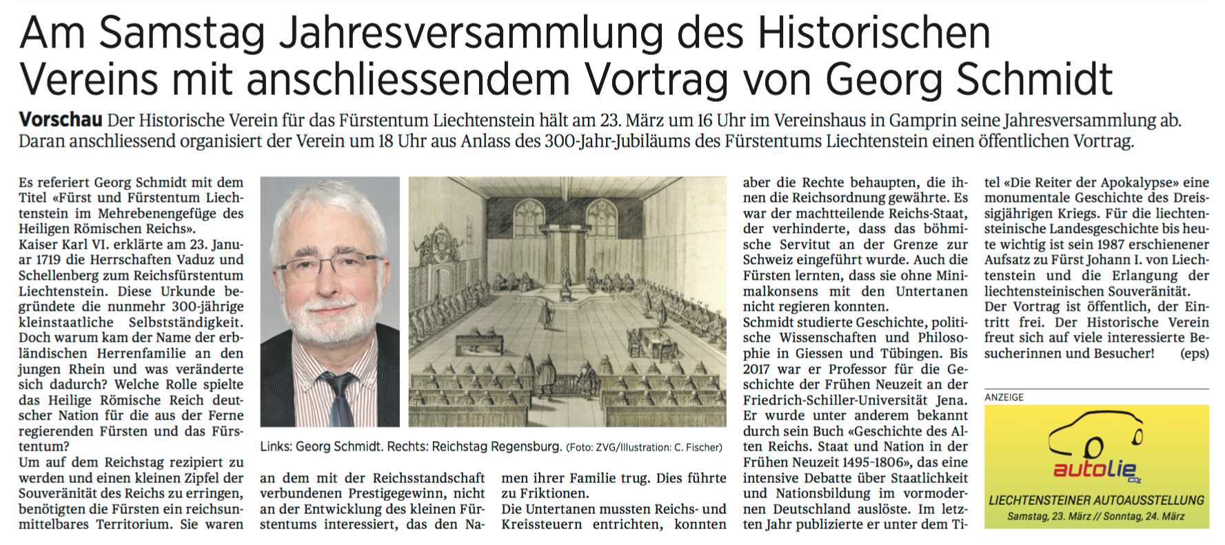 Veranstaltungsankündigung Liechtensteiner Volksblatt, 21.03.2019